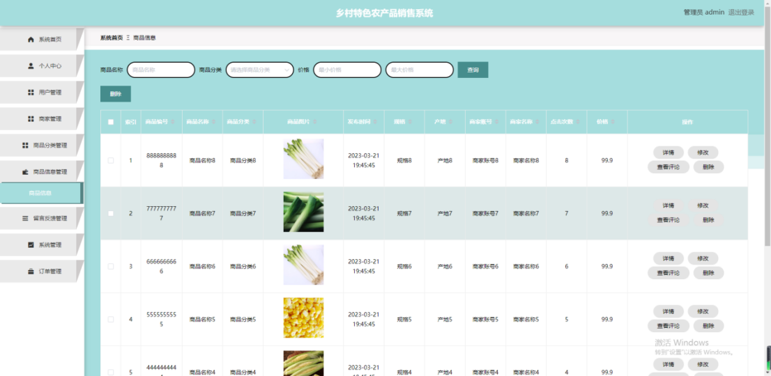 管理员具有整个系统的最高权限,可以使用系统中的所有功能模块,包括查看所有乡村特色农产品销售信息,并对这些数据进行管理。在用户模块中可以将新的信息录入系统,还可以查询,删除和编辑权限内的信息。在系统维护管理中可以对用户登录信息、用户权限进行管理。