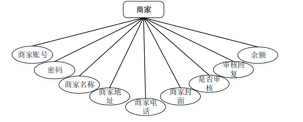 数据库对所有信息管理系统来说都十分重要,因为系统中的核心功能大多都依赖于数据库,所以数据库的设计将对系统的性能和功能实现起到重要作用。该系统内总共有两类对象,分别是管理员、商家和用户,数据库设计将根据这些用户的属性来实现,同时,建立表的结构以及表与表之间的关系。