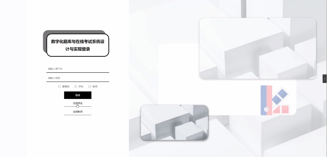 本课题要求实现一套数字化题库与在线考试系统,系统主要包括管理员、教师和学生三大功能模块。