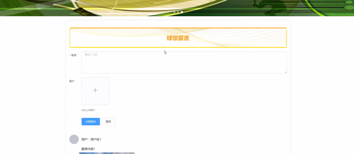 球馆留言,用户可通过输入留言、上传图片进行提交等操作,如图5-5所示: