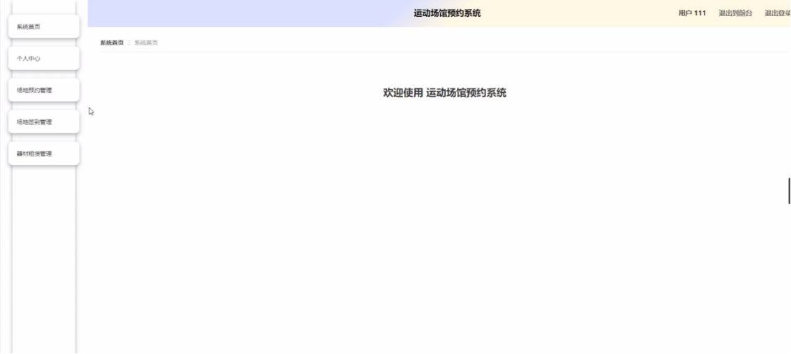 后台管理,用户进入系统后台可查看个人中心、场地预约管理、场地签到管理、器材租赁管理等内容,图5-6所示: