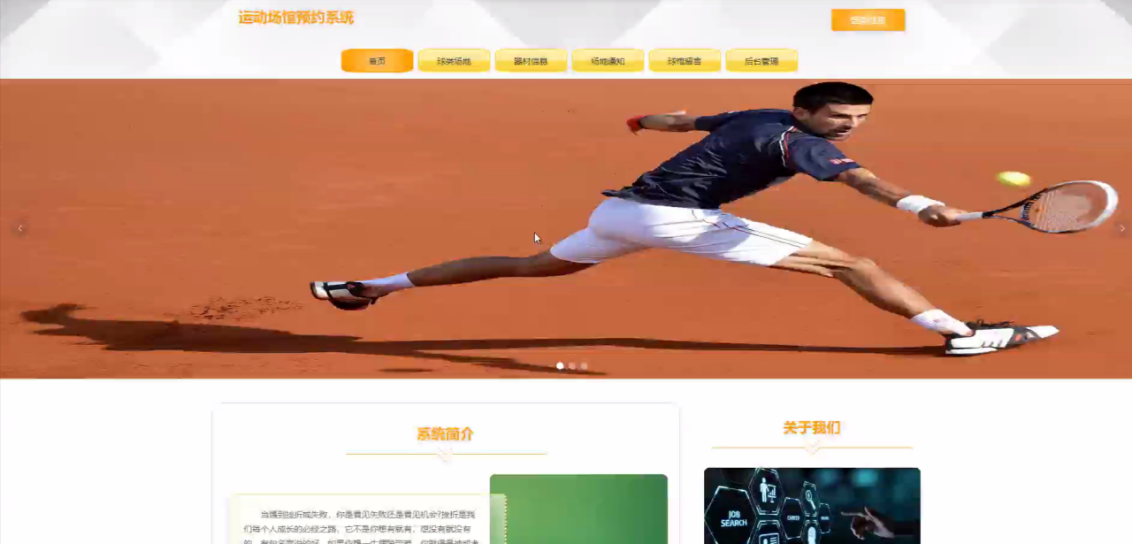 当人们打开系统的网址后,首先看到的就是首页界面。在这里,人们能够看到运动场馆预约系统的导航条和装饰产品推荐等,系统首页界面如图5-1所示:
