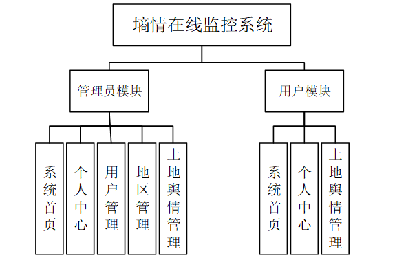 管理员端的功能主要是开放给系统的管理人员使用,能够对用户的进行管理,包括对他们的账号管理、对地区管理和土地舆情管理进行查看,修改和删除等,对系统整体运行情况进行了解。
