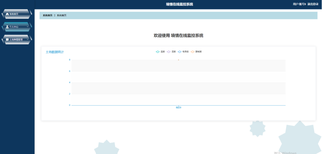 用户进入系统可以对个人中心和土地舆情管理等功能进行操作。用户功能页面如图5-6所示: