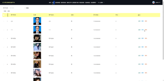 管理员登录进入系统直接管理用户、游戏类型、游戏信息、游戏订单、游戏排行榜、商品信息、兑换商品、系统管理、个人资料等信息。本网站模块设计的独立性强,用户体验良好、后期维护修改管理十分方便。