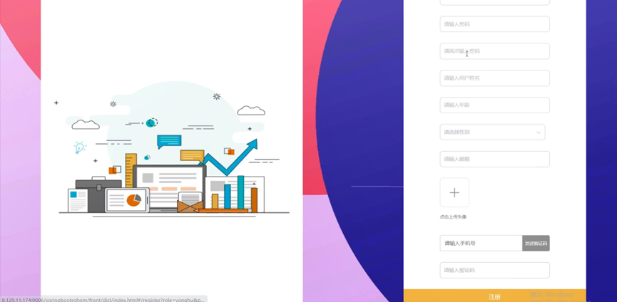 系统注册:在系统注册页面的输入栏中输入用户注册信息进行注册操作,系统注册页面如图5-2所示: