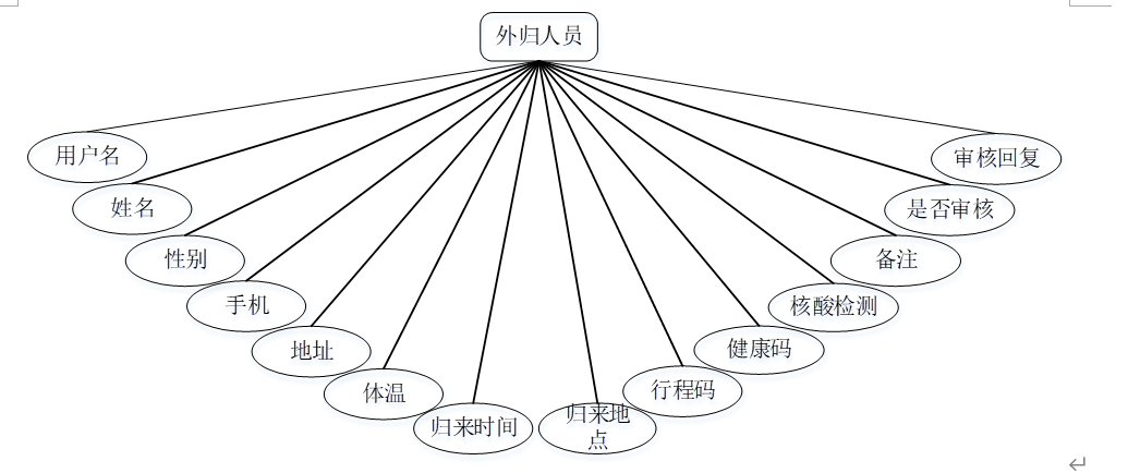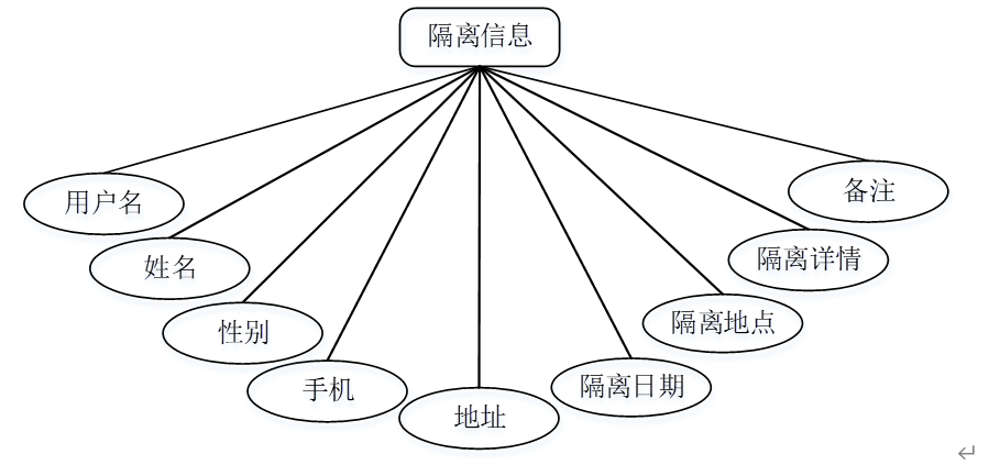 为了更直观阐明数据库的设计,使用 Vision 绘制的福源社区疫情管理系统数据模型E-R实体属性图。根据系统需求设计了以下几个主要实体。