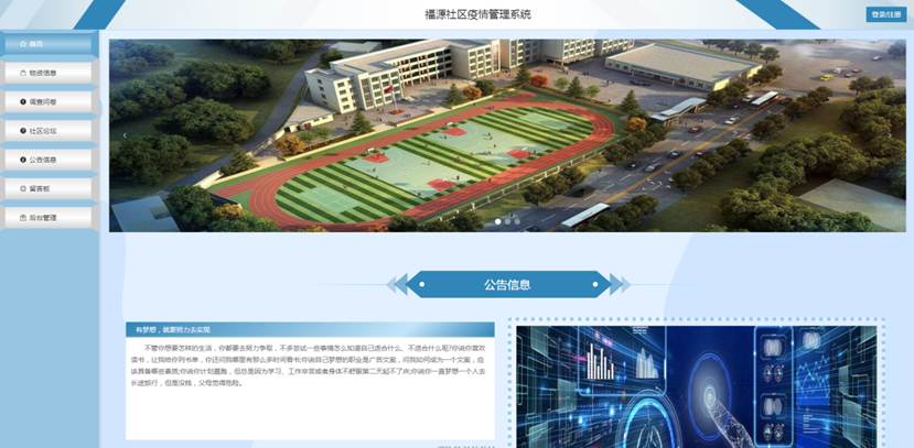 在社区疫情防控常态化背景下,传统社区疫情管理依赖人工登记,存在信息统计滞后、物资调配低效等问题,难以满足快速响应与精准防控需求。依托 Java 语言、SSM 框架、B/S 架构及 MySQL 数据库,开发福源社区疫情管理系统,整合健康上报、隔离管理、物资调配等功能,支持管理员、网格员、用户三类角色协同,打造专业化社区疫情防控平台。该系统既能帮助管理员统筹疫情信息与资源,网格员高效执行防控任务,又能让居民便捷完成健康申报与物资申请,提升社区疫情防控效率与精准度。