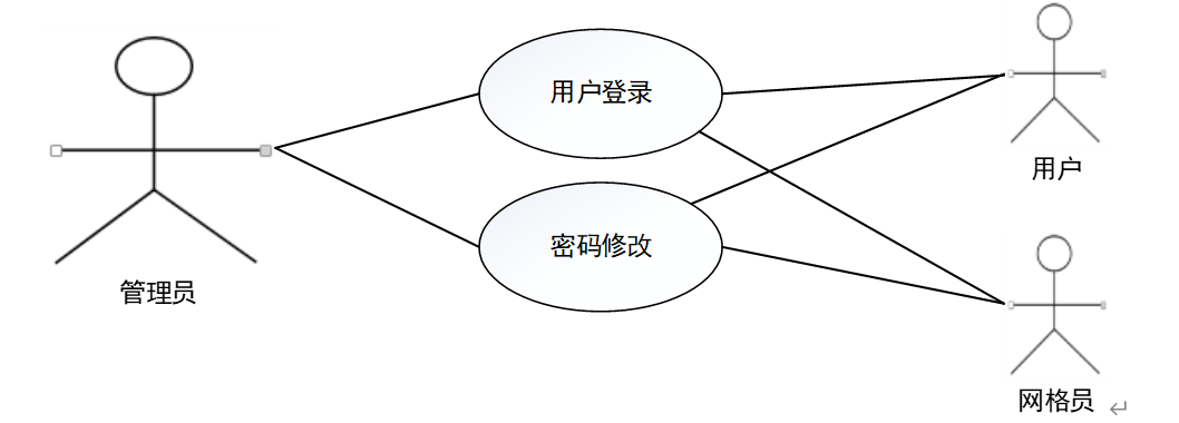 (1)系统的通用功能包括用户登录和密码修改,是三个角色共同需要使用的功能,用例分析如图3-1所示。