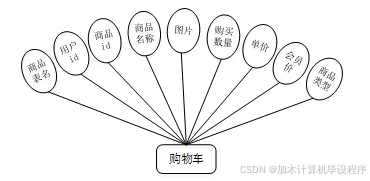 购物车实体包括商品表名、用户id、商品id、商品名称、图片、购买数量、单价、会员价、商品类型等属性;购物车实体图如图4-3所示: