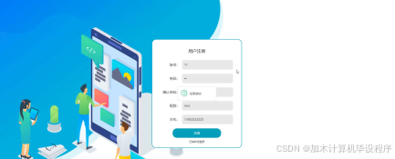 2、新用户注册:新用户填写账号、密码、确认密码、昵称、手机等信息完成注册操作。