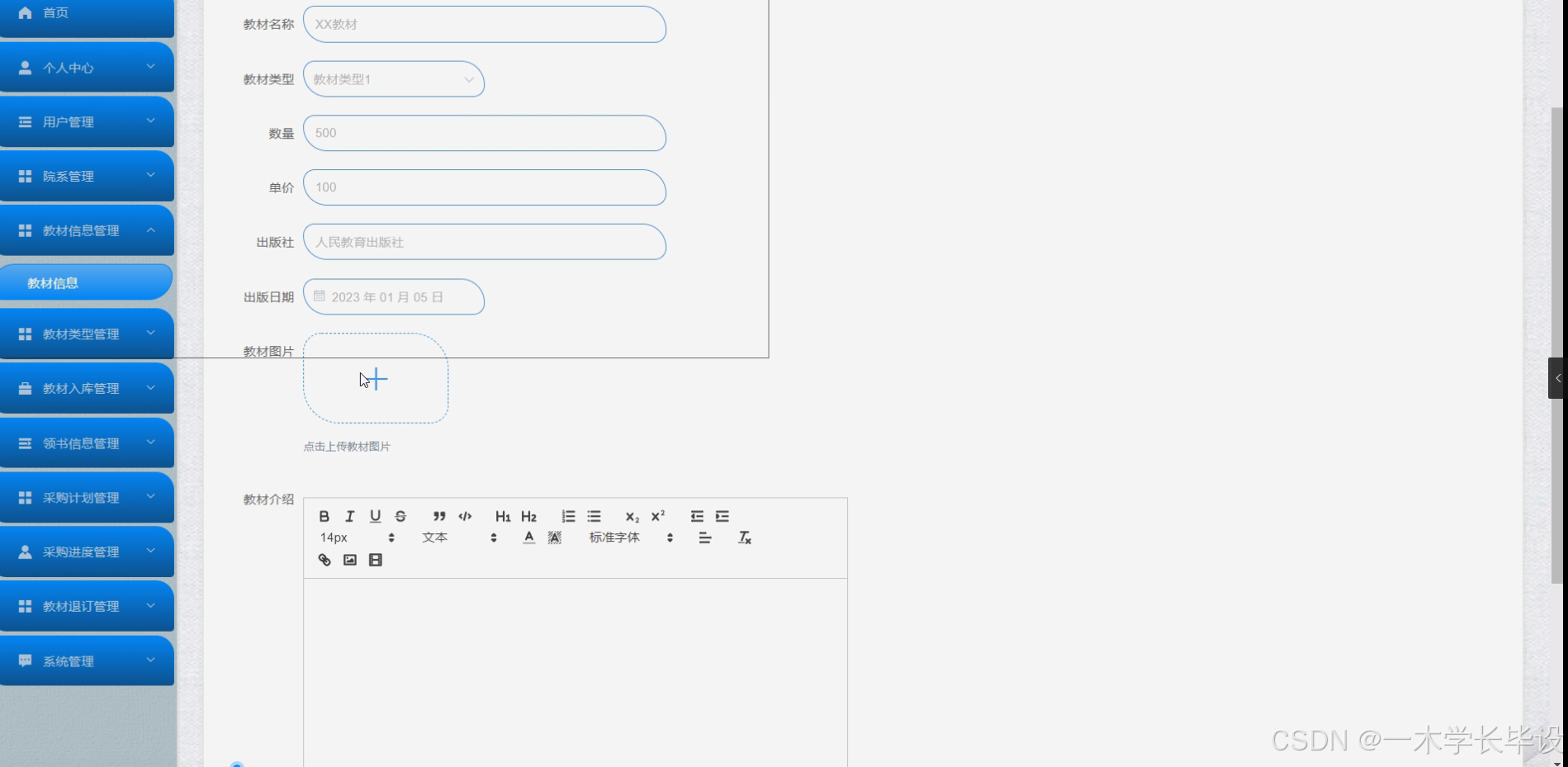随着高等教育的快速发展,高校教材管理面临着越来越多的挑战。传统的人工管理方式不仅效率低下,而且容易出现信息不准确、教材分配不公等问题。同时,随着学生人数的增加和课程设置的多样化,教材管理变得更加复杂。因此,开发一个高效、准确、便捷的高校教材管理系统显得尤为重要。该系统旨在通过信息化手段,实现教材的智能化管理,提高教材管理的效率和准确性,为高校的教学工作提供有力支持。