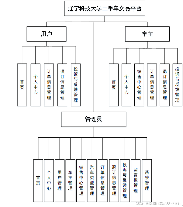 根据辽宁科技大学二手车交易平台的功能需求,进行系统设计。