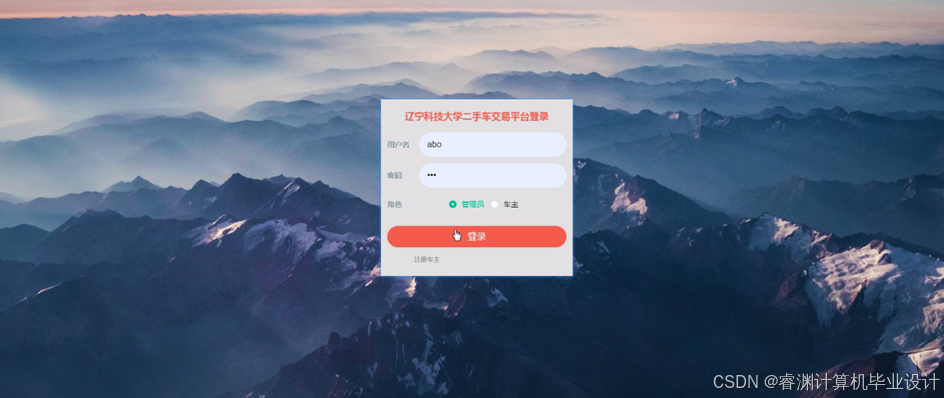 用户登录;在登录页面中输入账号、密码等内容进行登录操作;如图4-3所示。