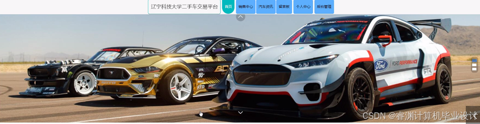 辽宁科技大学二手车交易平台,用户进入前台网站查看首页、销售中心、汽车资讯、留言板、个人中心、后台管理等内容进行操作,如图4-1所示。