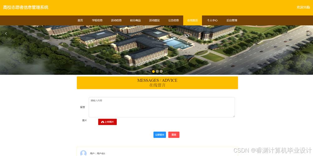 在线留言管理:志愿者可以通过在线留言功能向管理员提问或反馈问题,管理员可以回复留言。