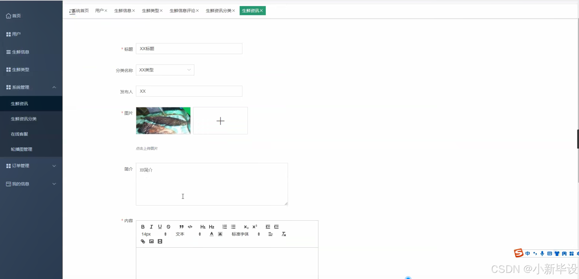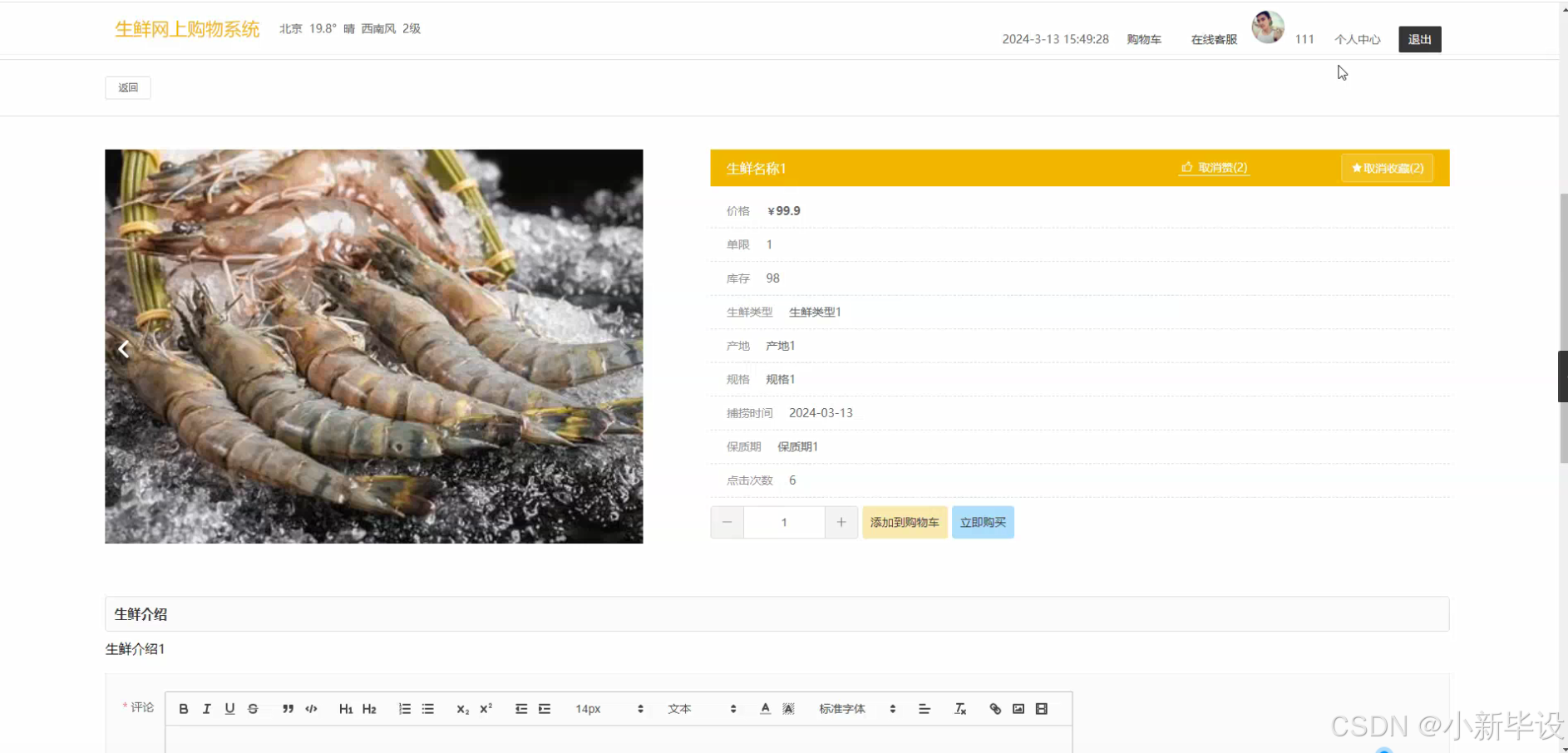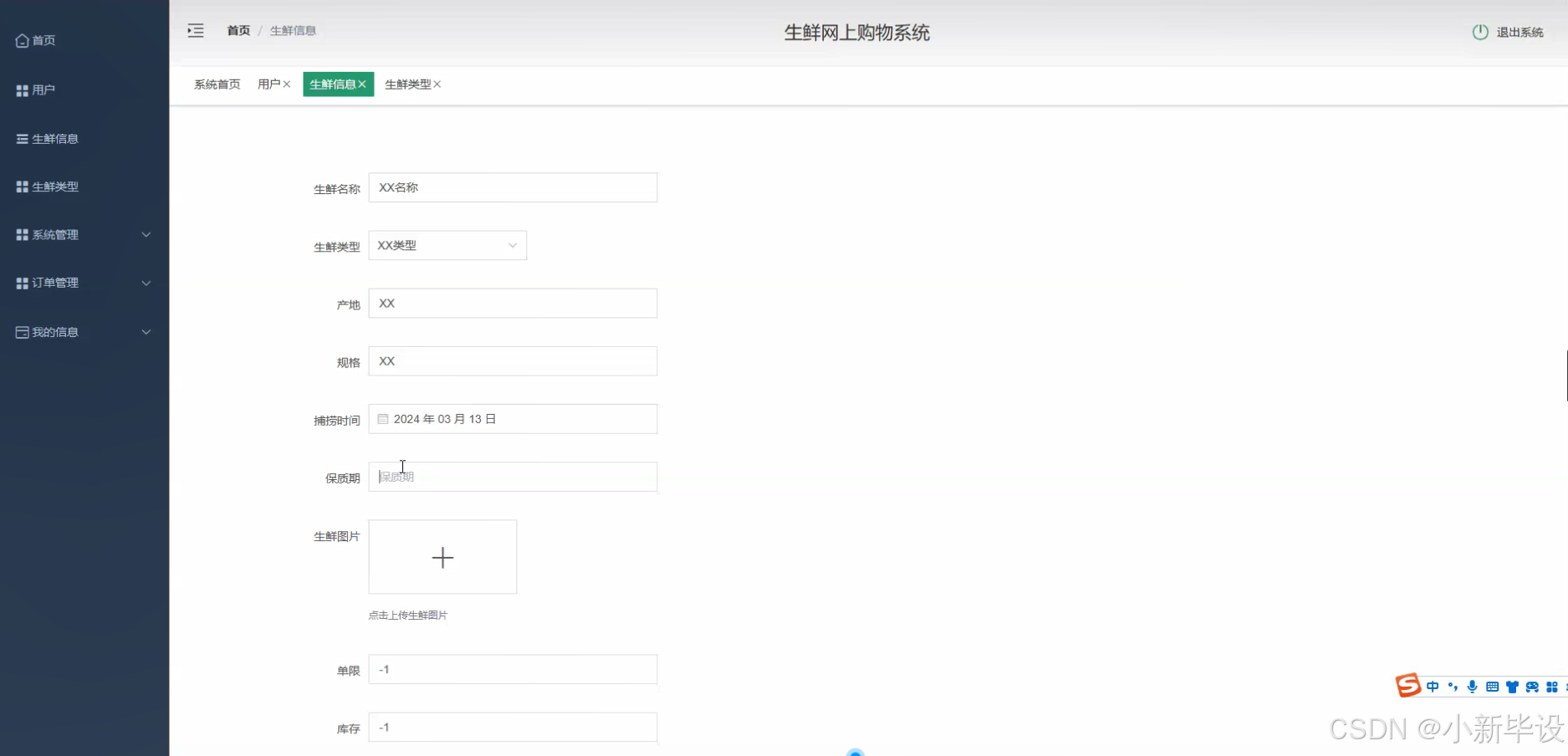 - 生鲜产品信息录入
