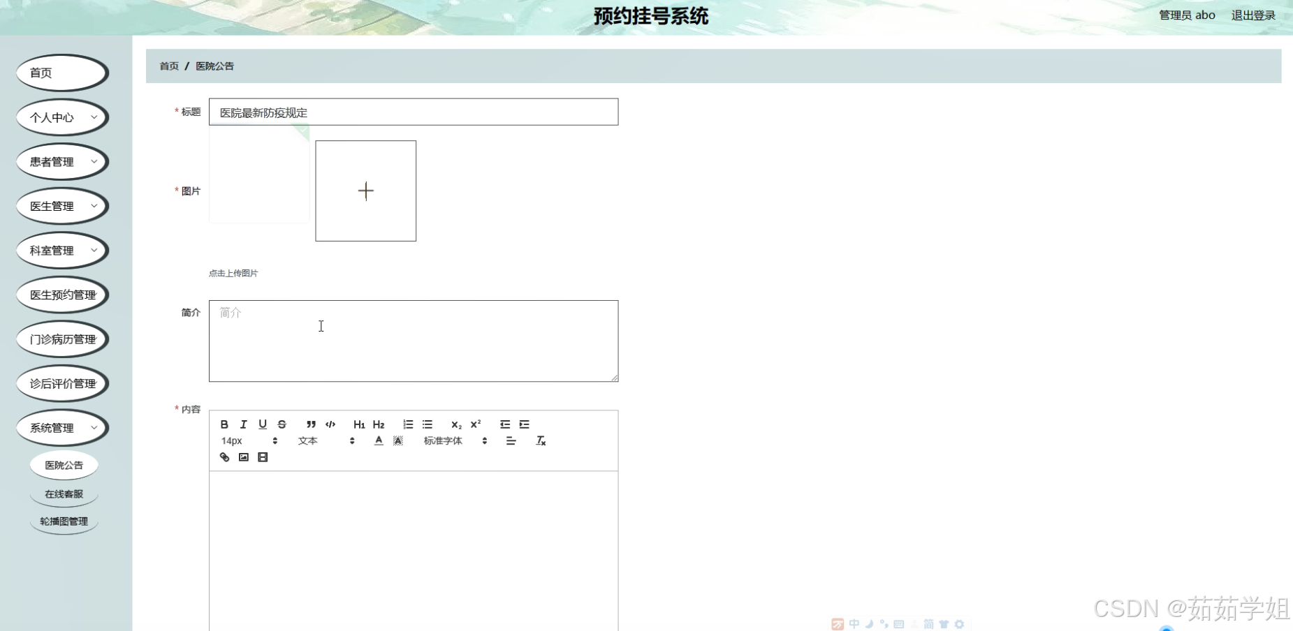 - 注册与登录:设计安全可靠的患者注册与登录模块,确保患者信息的安全性和准确性。患者通过注册登录后才能进行预约挂号等操作,这是整个系统的基础功能。