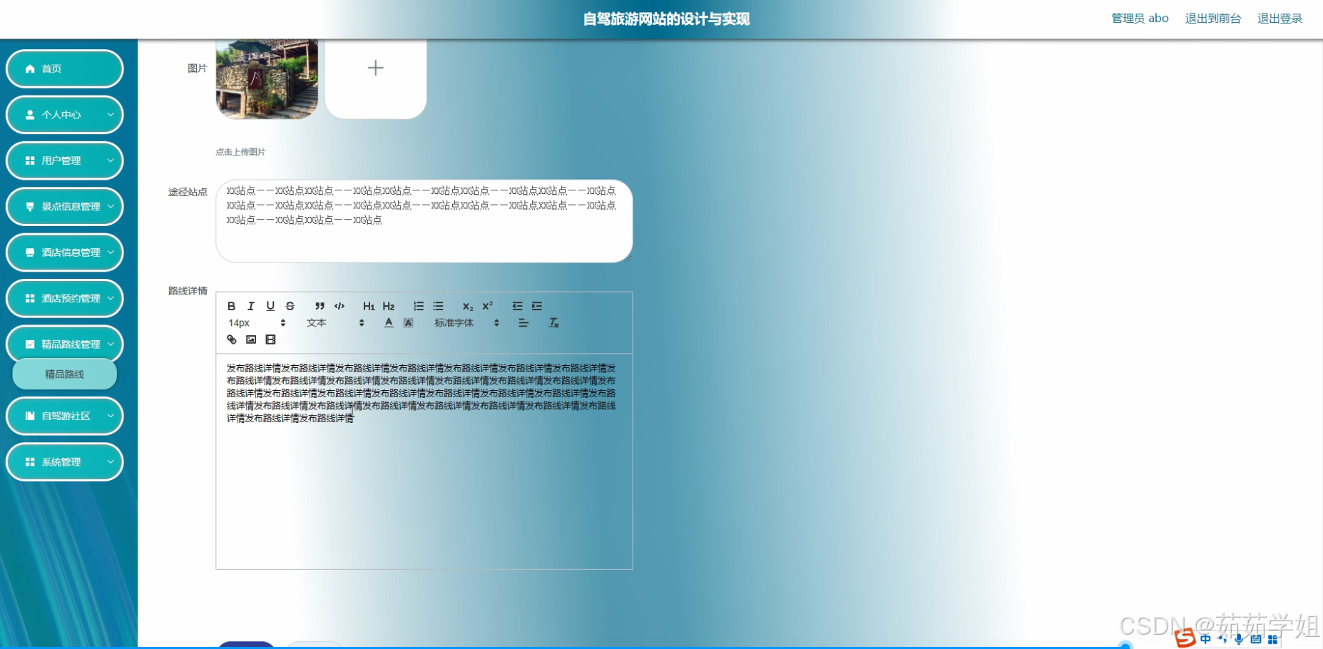 - 既要整合大量的旅游资源,又要根据用户的个性化需求提供精准的服务。例如,在精品路线推荐中,如何根据用户的偏好从众多的旅游景点中筛选出合适的路线,同时又能保证路线的多样性和可行性。
