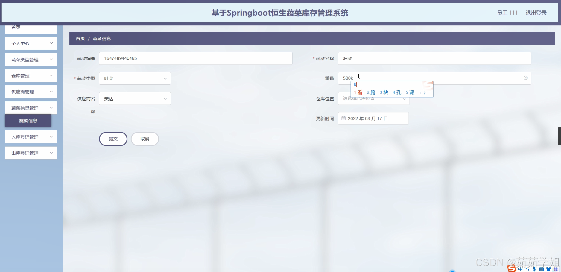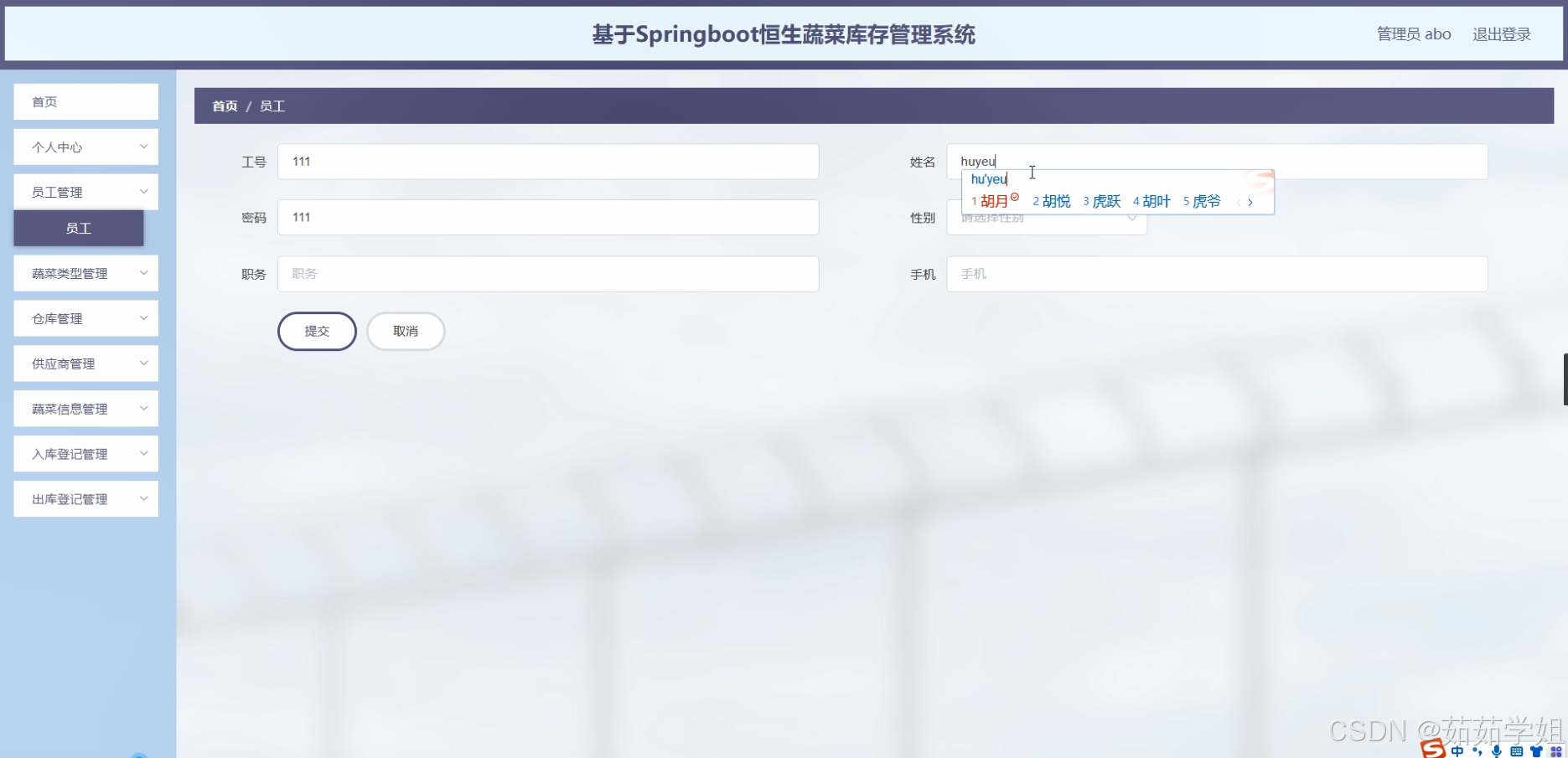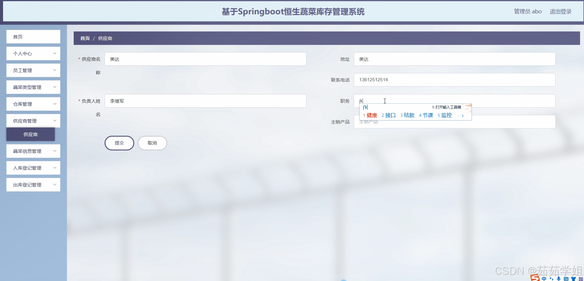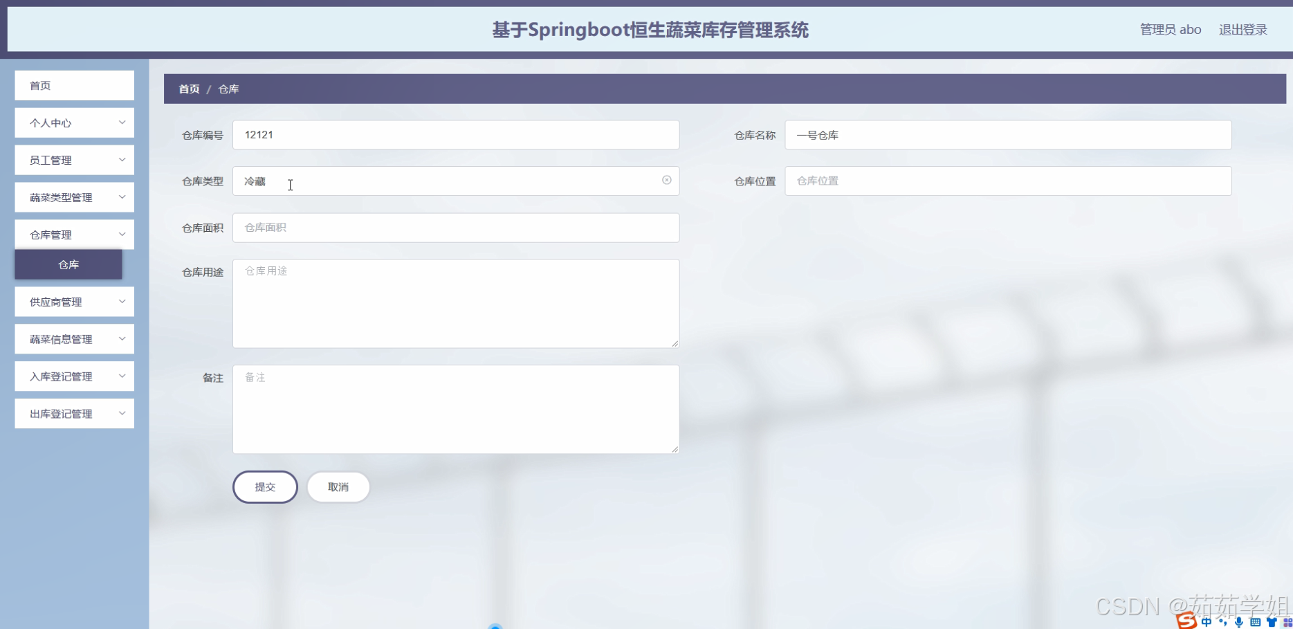 本研究的主要目的是构建一个基于Springboot的恒生蔬菜库存管理系统,以满足蔬菜库存管理的多方面需求。具体而言,一是实现对蔬菜信息的全面管理,包括蔬菜类型、库存数量等信息的准确记录和快速查询;二是优化员工管理,合理分配员工在蔬菜入库、出库和报废等环节的工作任务,提高工作效率;三是有效管理仓库资源,根据蔬菜的特性和库存情况合理安排仓库空间;四是加强对供应商的管理,及时获取供应商的供应信息,确保蔬菜的稳定供应;五是通过系统的入库登记、出库登记和报废登记等功能,实现对蔬菜库存的精确控制。