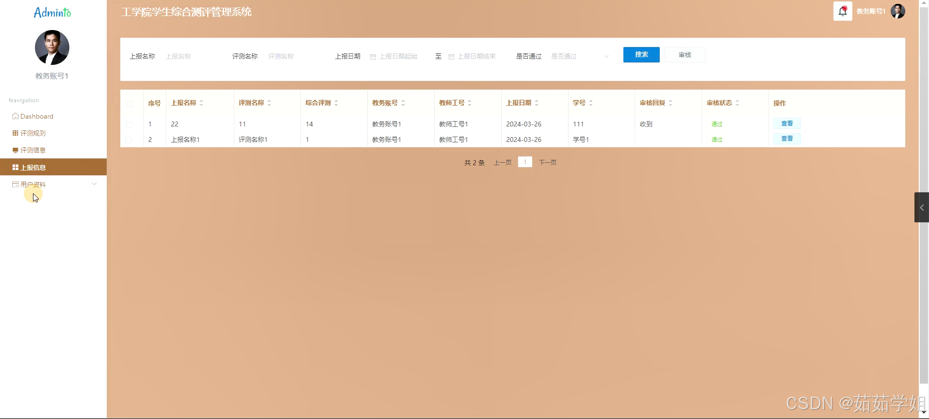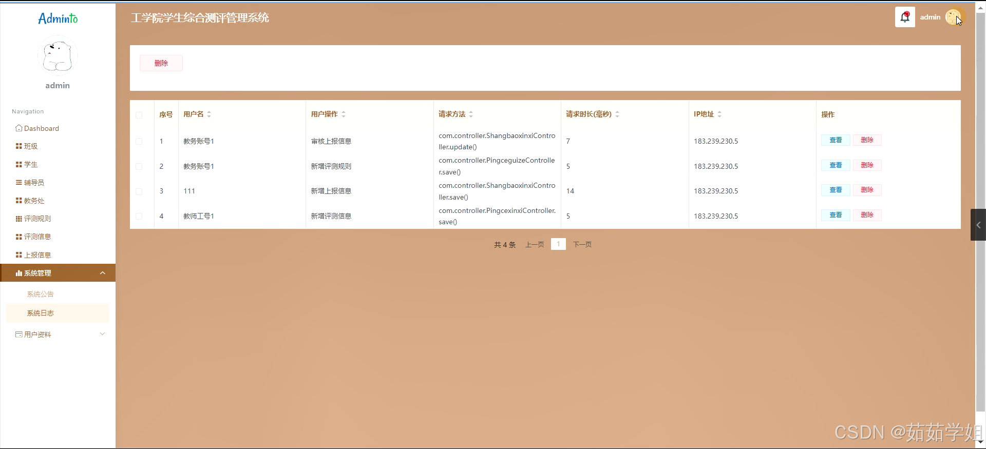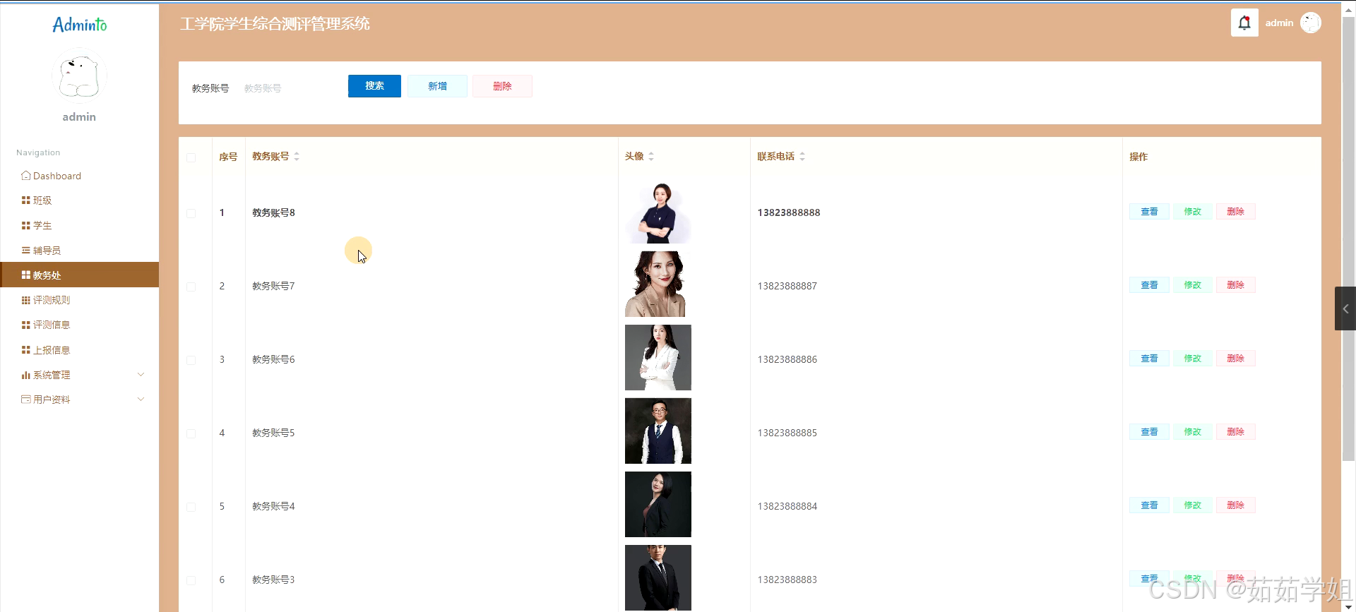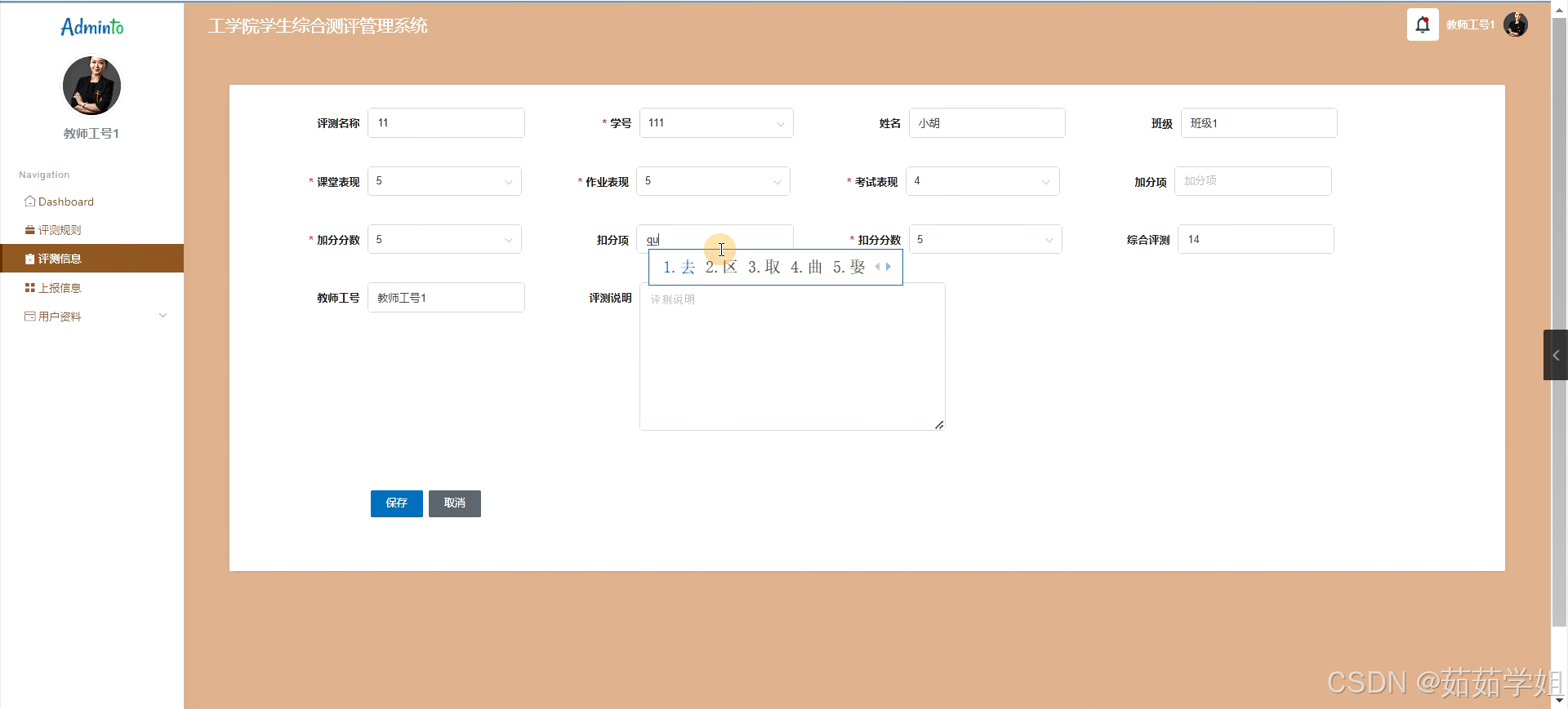 - 成功构建一个工学院学生综合测评管理系统,该系统具备班级、学生、辅导员、教务处等多方面的功能模块,能够高效地管理学生的评测信息和上报信息,实现对学生综合测评的自动化、科学化管理。