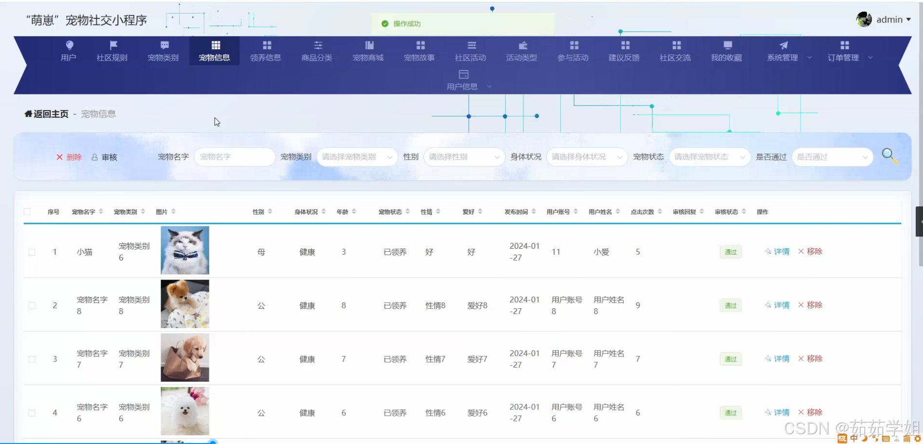 - 领养信息的真实性审核:建立严格的领养信息审核机制,确保发布的领养信息真实可靠,防止欺诈行为。