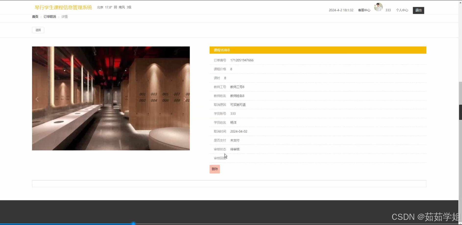 - 订单取消:为学员提供订单取消的功能,并且在取消订单时,系统需要按照规定的流程处理退款、调整课程名额等相关事宜。