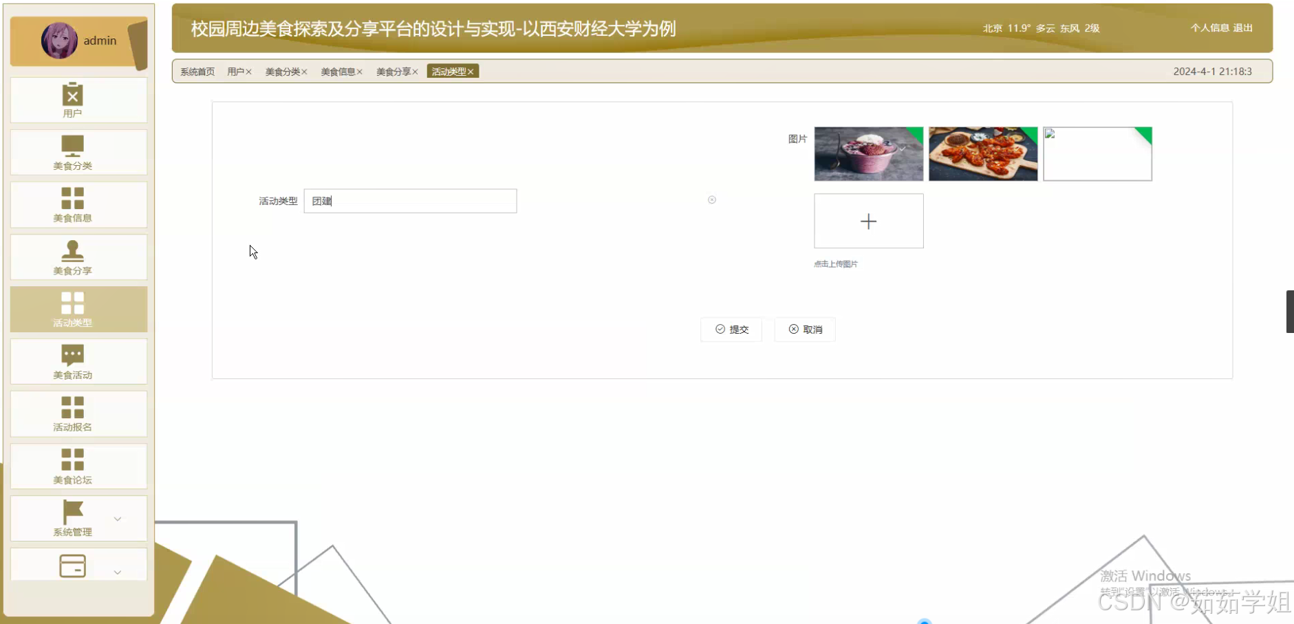 - 美食活动发布:商家或者平台管理员可以在平台上发布美食活动信息,包括活动的名称、时间、地点、活动内容、参与方式等详细信息。