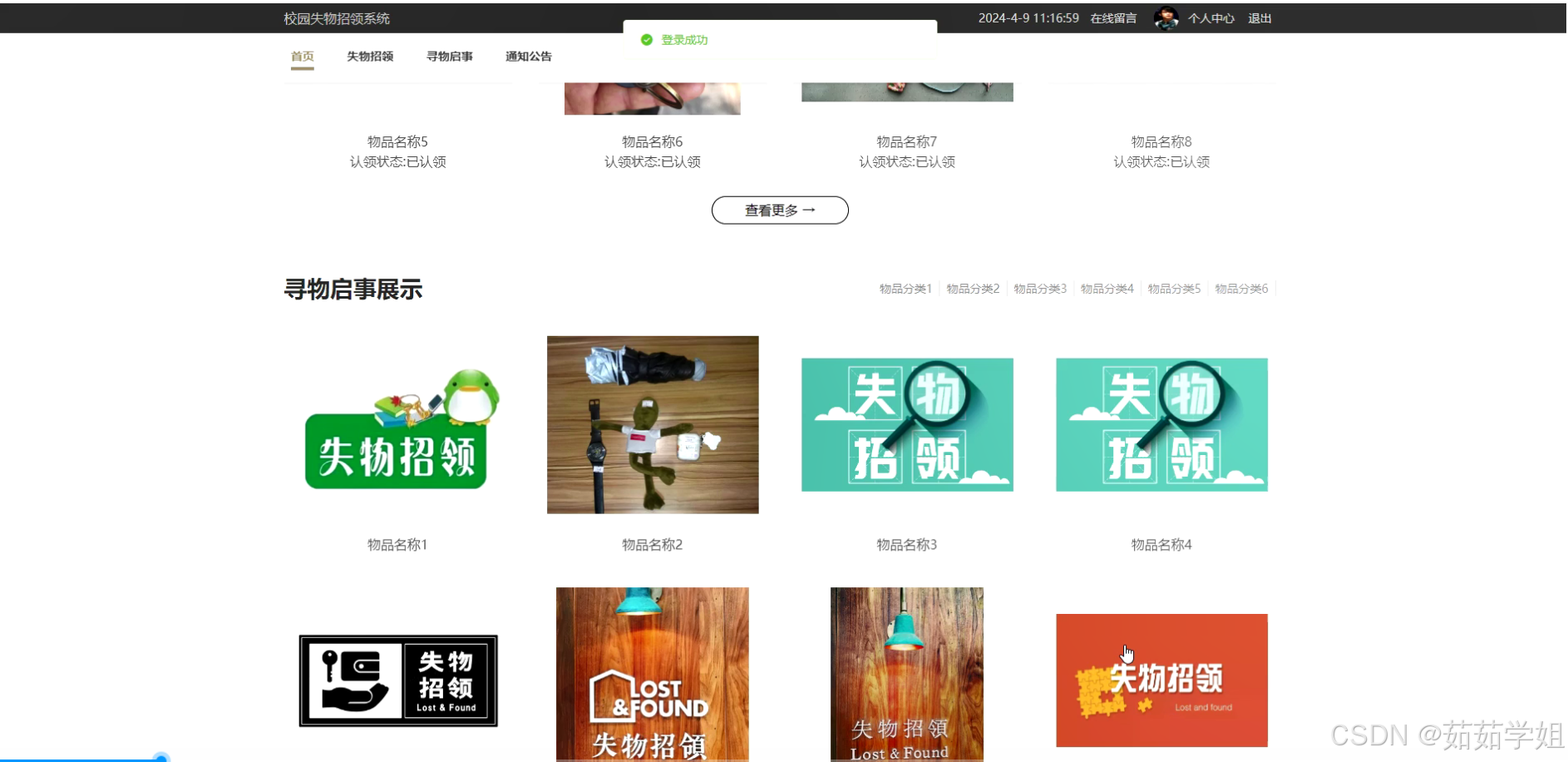 - 成功开发出一个功能完整、操作便捷的校园失物招领系统。该系统能够实现用户管理、物品分类管理、失物招领、寻物启事和闲置物品管理等功能,满足师生在校园生活中的失物招领和闲置物品处理需求。