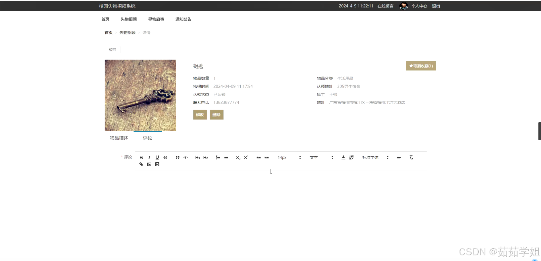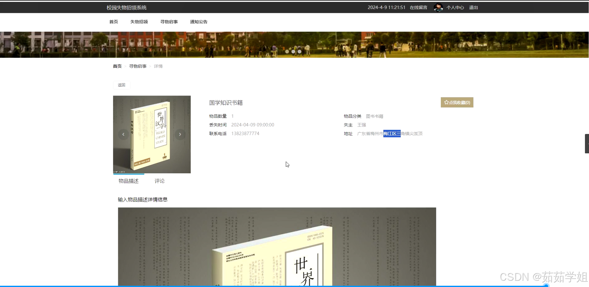 校园失物招领系统具有重要的意义。从师生的角度来看,该系统为失主和拾物者提供了一个便捷、高效的沟通平台。失主能够及时发布寻物启事,详细描述失物特征、丢失地点等关键信息;拾物者也可以快速发布失物招领信息,大大提高了失物归还的概率,减少了师生因失物带来的困扰和经济损失。从校园管理的层面而言,有助于提升校园整体的服务水平和形象,营造更加和谐有序的校园环境。而且这种信息化的管理模式也符合现代校园建设的发展趋势,能够进一步推动校园的数字化转型 12 。