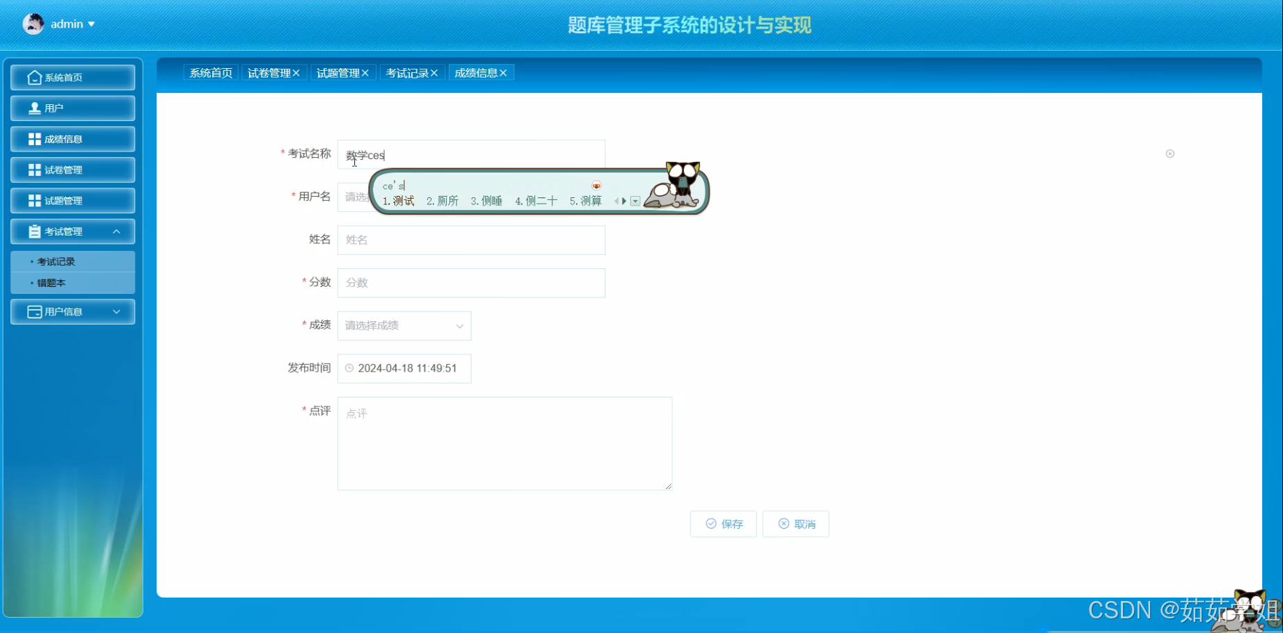 - 试题信息录入与编辑