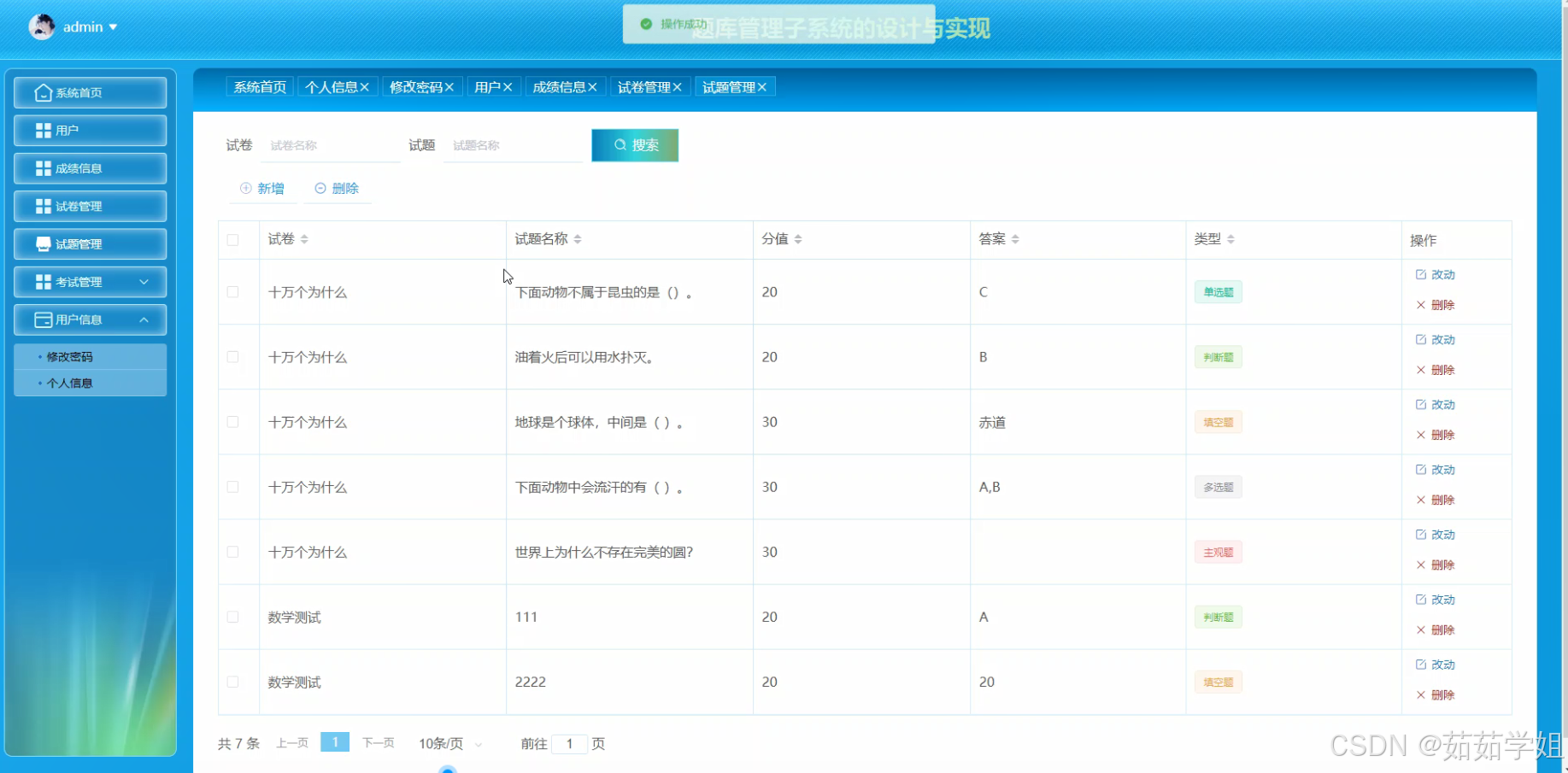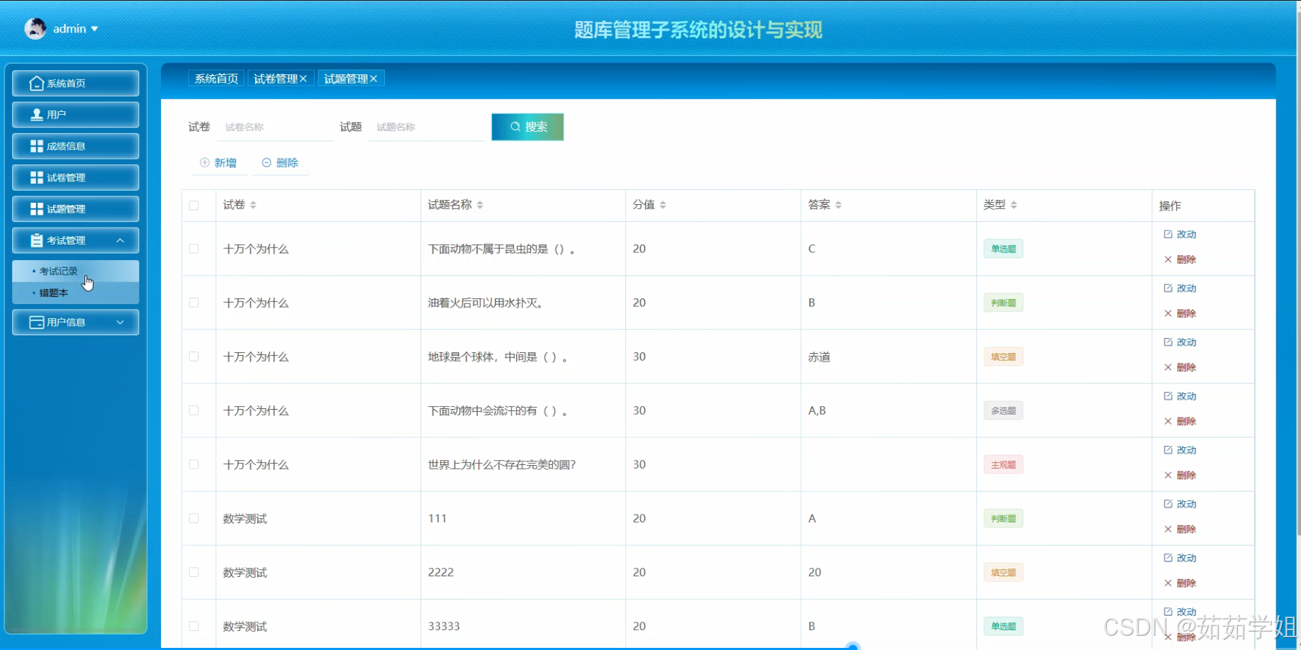 (二)试题管理功能