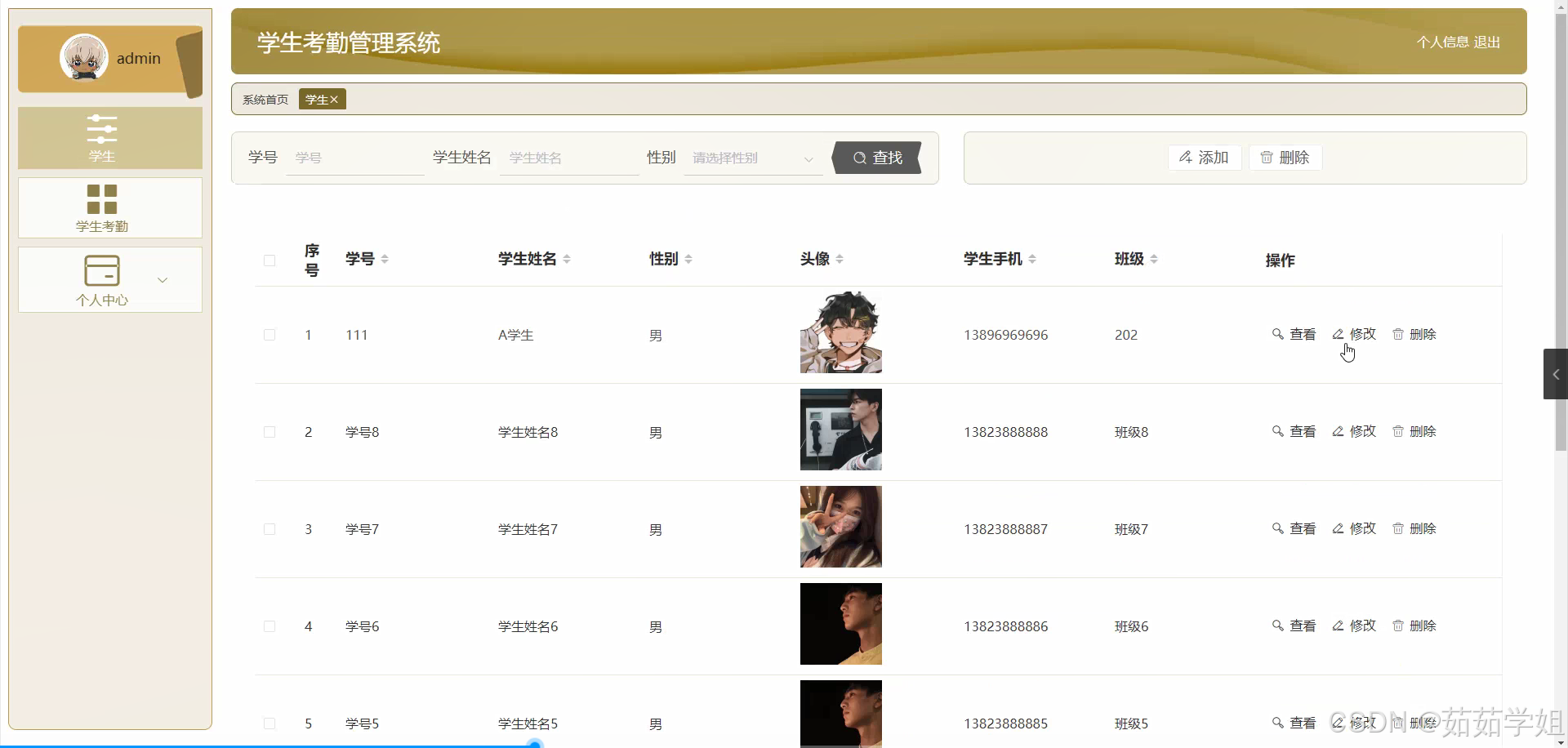 (一)学生信息管理