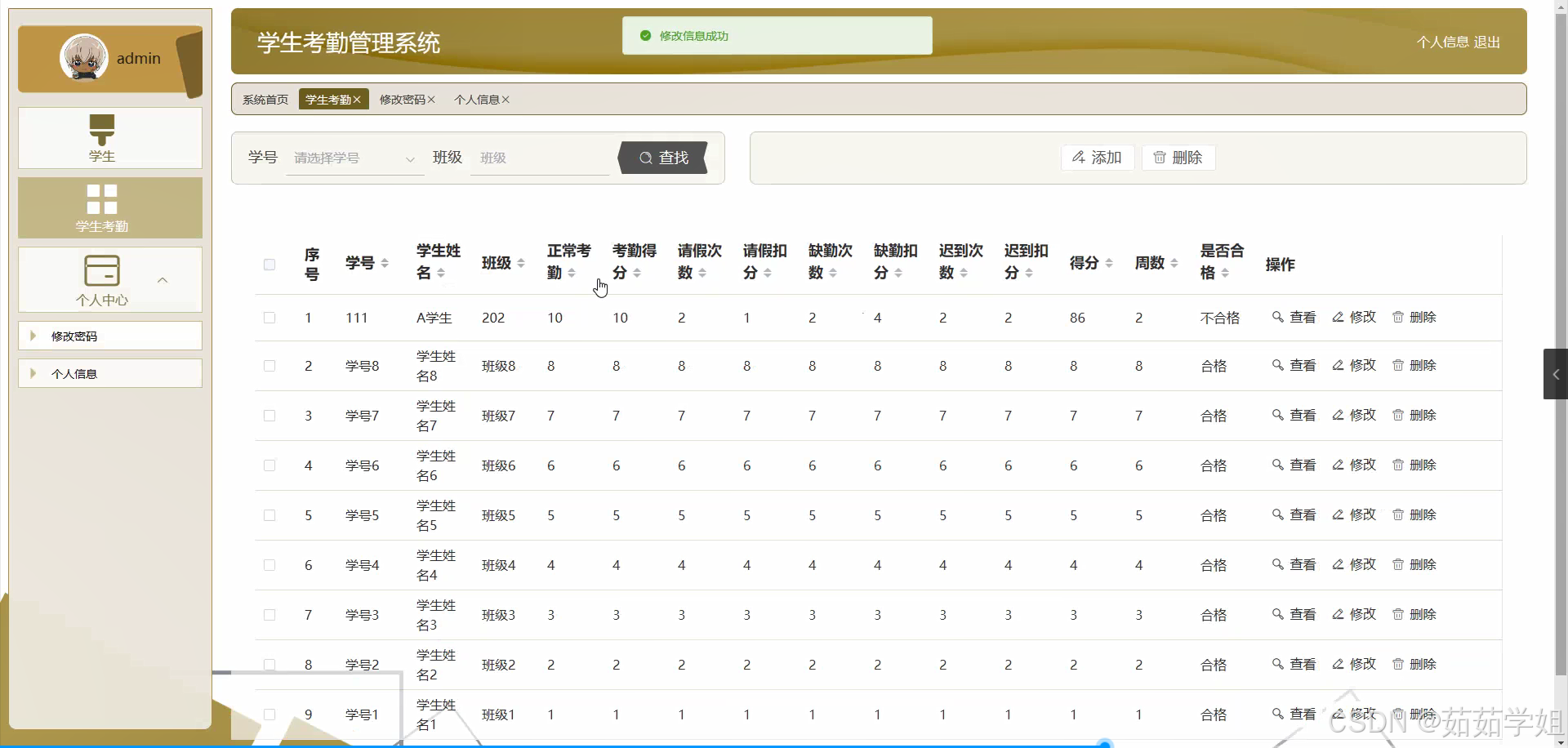 - 随着学生的升学、转班等情况的发生,系统需要支持对学生基本信息的修改和更新功能。同时,也要考虑到可能出现的信息错误修正情况。