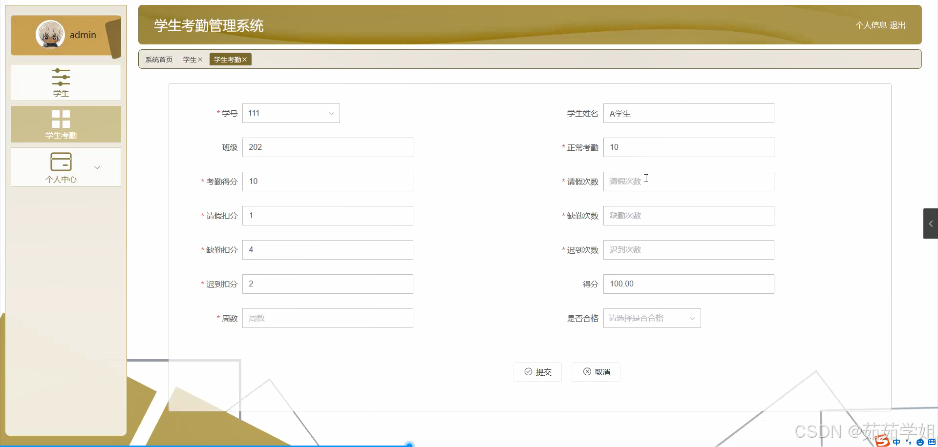 - 学生请假申请