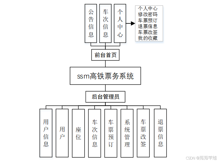 高铁票务系统综合网络空间开发设计要求。目的是将传统管理方式转换为在网上管理,完成高铁票务管理的方便快捷、安全性高、交易规范做了保障,目标明确。高铁票务系统可以将功能划分为管理员功能和用户功能。
