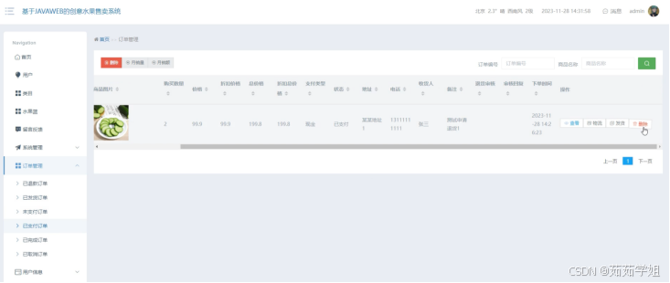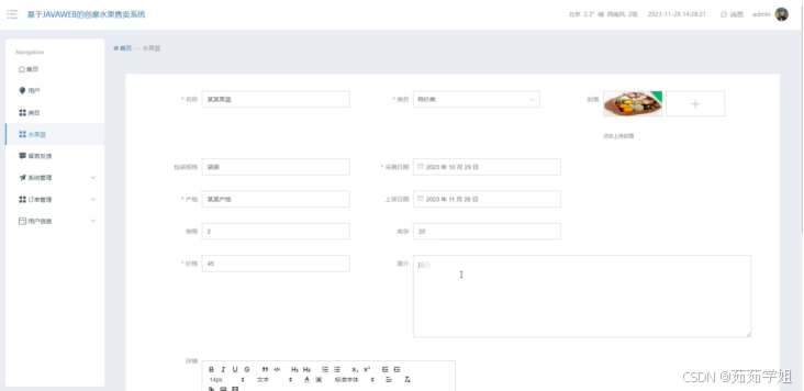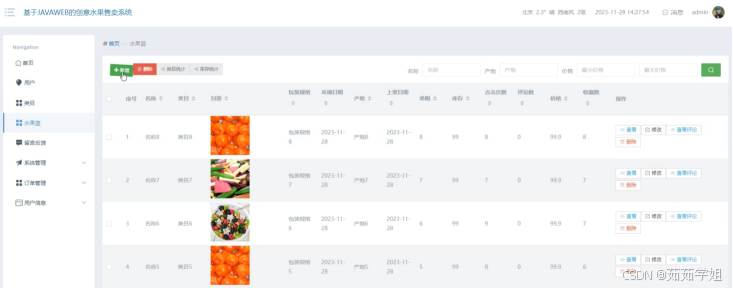 水果篮管理:管理员可以管理水果篮商品,包括新增、修改、删除以及查看评论。