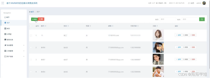 用户管理:管理员可以对用户信息进行查询、新增、修改和删除。