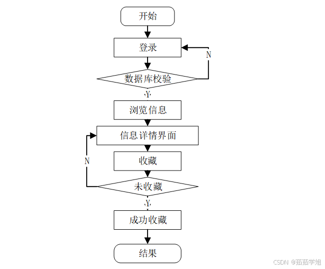 在创意水果售卖系统中,用户登录后,浏览水果商品详情界面能进行信息收藏,用户收藏信息的流程图如图3-5所示: