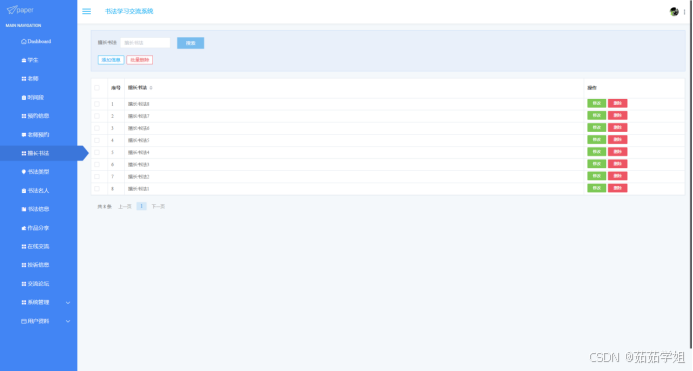 本系统采用SSM(Spring + Spring MVC + MyBatis)框架进行开发,结合MySQL数据库,旨在为书法爱好者提供一个功能丰富、操作便捷的在线学习与交流平台。系统的主要功能包括: