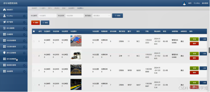 车位信息管理:实时监控车位的使用情况,包括车位编号、位置、状态等信息的管理。