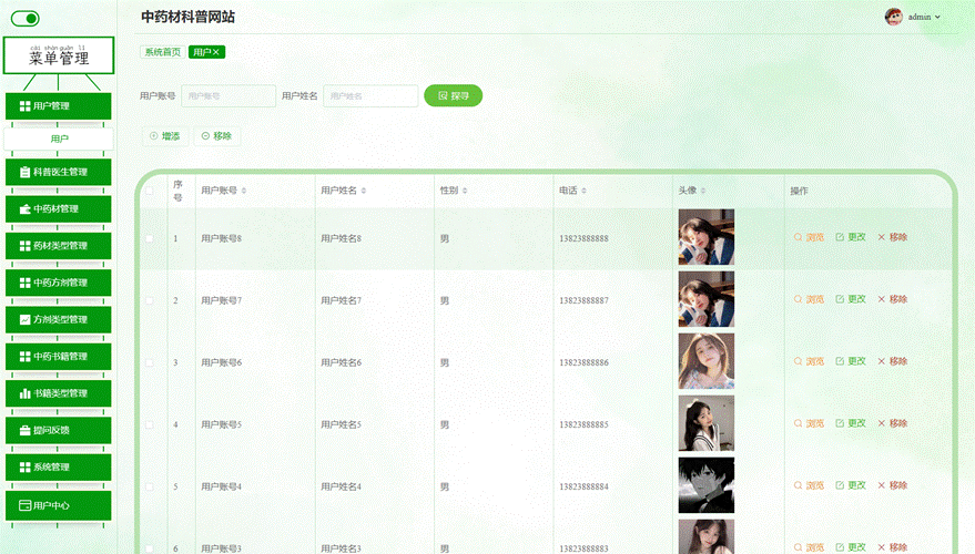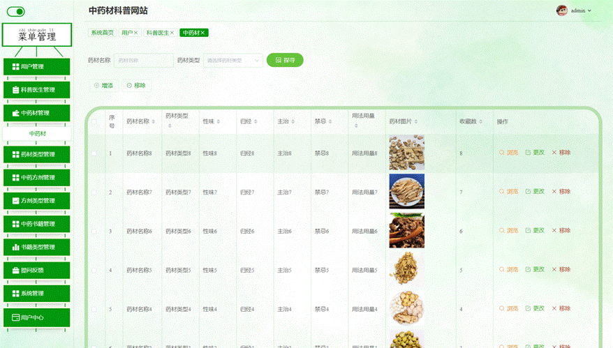 图5-9中药材管理界面
