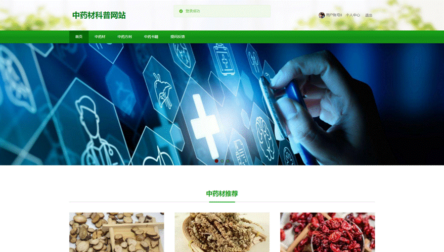 此文档聚焦于基于 Java 技术和 Springboot 框架开发的中药材科普网站。该系统具备丰富的功能,包含用户管理,可对用户相关信息进行操作;科普医生管理,能对科普医生的信息等进行处理;中药材管理,可实现对中药材各类信息的管理;药材类型管理,用于对药材的类型进行分类管理;中药方剂管理,可管理中药方剂的相关内容;方剂类型管理,对方剂的类型进行划分管理;中药书籍管理,能对中药书籍信息进行整理;书籍类型管理,用于管理书籍的类型;提问反馈功能,方便用户提问与获取反馈;系统管理,对系统整体进行设置和维护;用户中心,为用户提供个人信息管理等服务。