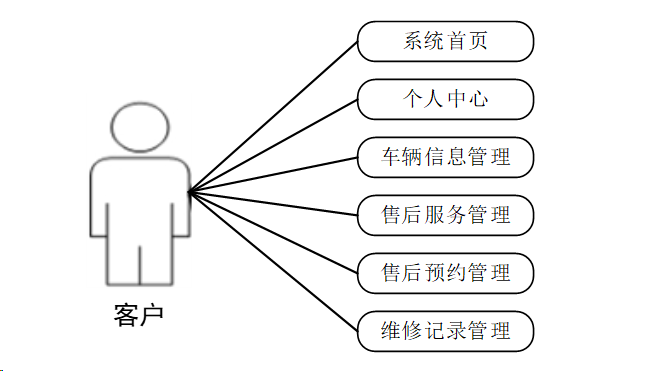 客户的功能模块中主要涵盖:可以根据需要和实际情况修改自己的个人信息,可以对车辆信息管理,售后服务管理,售后预约管理,维修记录管理进行操作等。