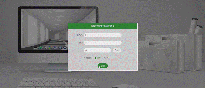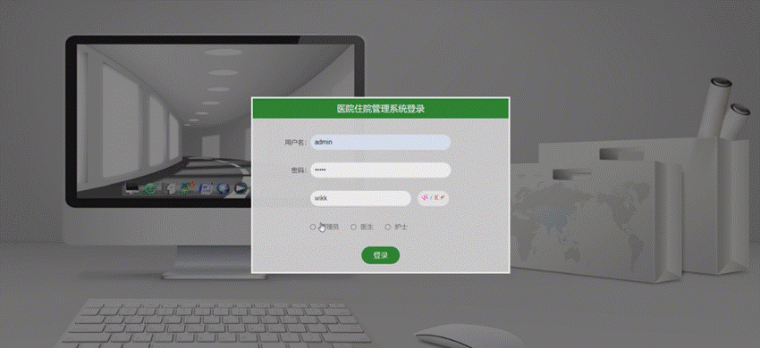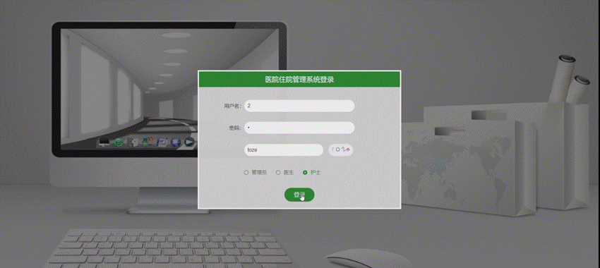 后台护士登录,在登录页面选择需要登录的角色,在正确输入用户名和密码后,进入操作系统进行操作;后台登录界面如图所示。