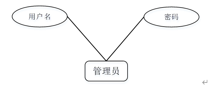 分析医院住院管理系统管理系统的数据结构后,在E-R图中分析管理员登录时的模式,需要输入用户名与密码,管理员信息E-R如图4-4所示。