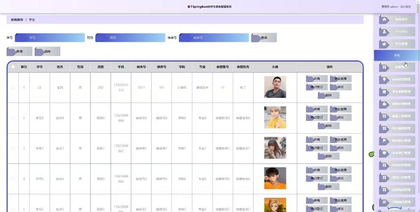 传统学生宿舍管理存在入住登记繁琐、报修流程低效、访客管理不规范等问题,难以满足校园宿舍精细化管理需求。为搭建专业化宿舍管理平台,开发一款集入住管理、报修处理、访客登记于一体的学生宿舍管理系统,成为提升校园宿舍管理效率的关键举措。