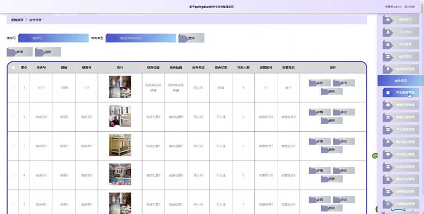 图5-16宿舍信息管理界面