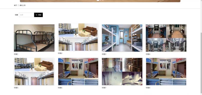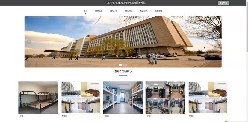 当人们打开系统的网址后,首先看到的就是首页界面。在这里,人们能够看到学生宿舍管理系统的导航条和作品精选推荐等。系统首页界面如图5-1所示:
