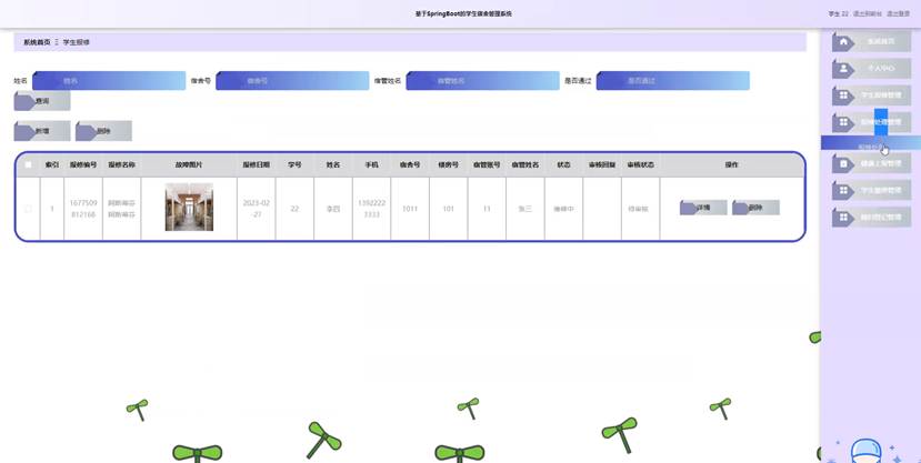 图5-17学生报修管理界面